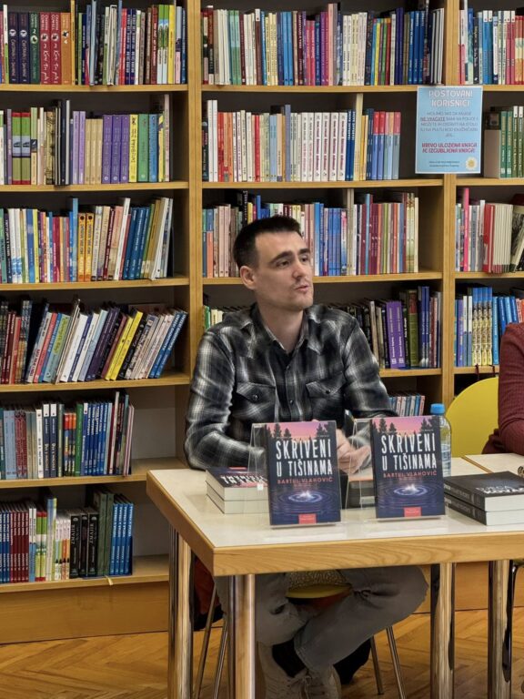 Bartul Vlahović predstavio je svoj prvijenac „Skriveni u tišinama“, kriminalistički roman objavljen prošle godine u izdanju Naklade Fragment. Radnja je smještena u Dalmatinsku zagoru, a u središtu priče nalazi se slučaj žene koja je prije 25 godina počinila zločin o kojem nikada nije progovorila. Nakon što se vrati u rodni kraj, njezino tijelo biva pronađeno na dnu bunara, čime započinje nova istraga.